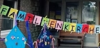 und da heißt es nicht stillsitzen und nur zuhören, sondern es geht um ein fröhliches Miteinander. Da gibt es Musik mit Bewegung, Geschichten aus der Bibel, die man erleben kann, und viel Zeit zum Basteln und Gestalten, denn der Gottesdienst findet nicht nur in der Kirche statt, sondern auch in allen anderen Räumen der Erlöserkirche. Hier wird interaktiv Gottesdienst gefeiert.