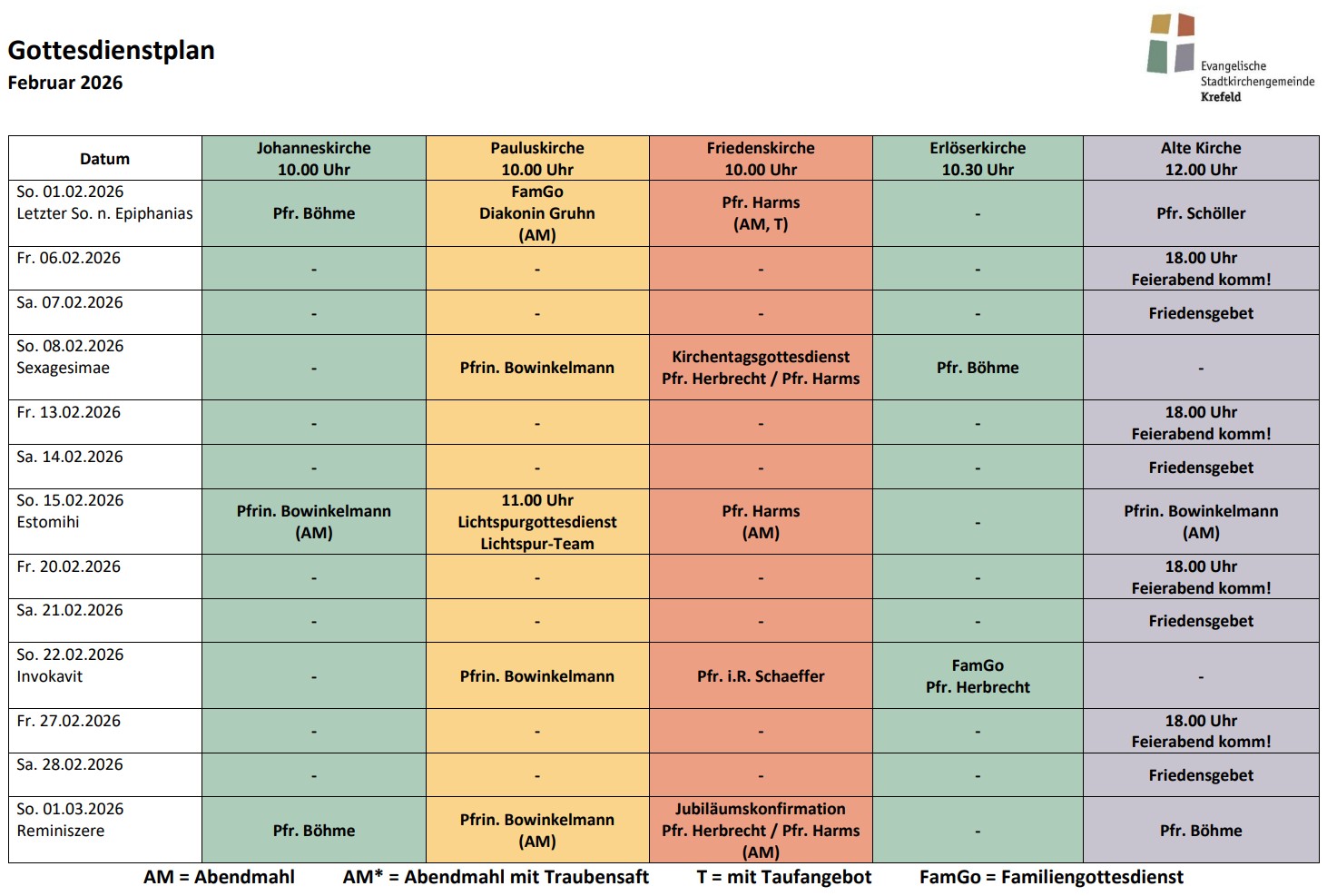 Gottesdienstplan